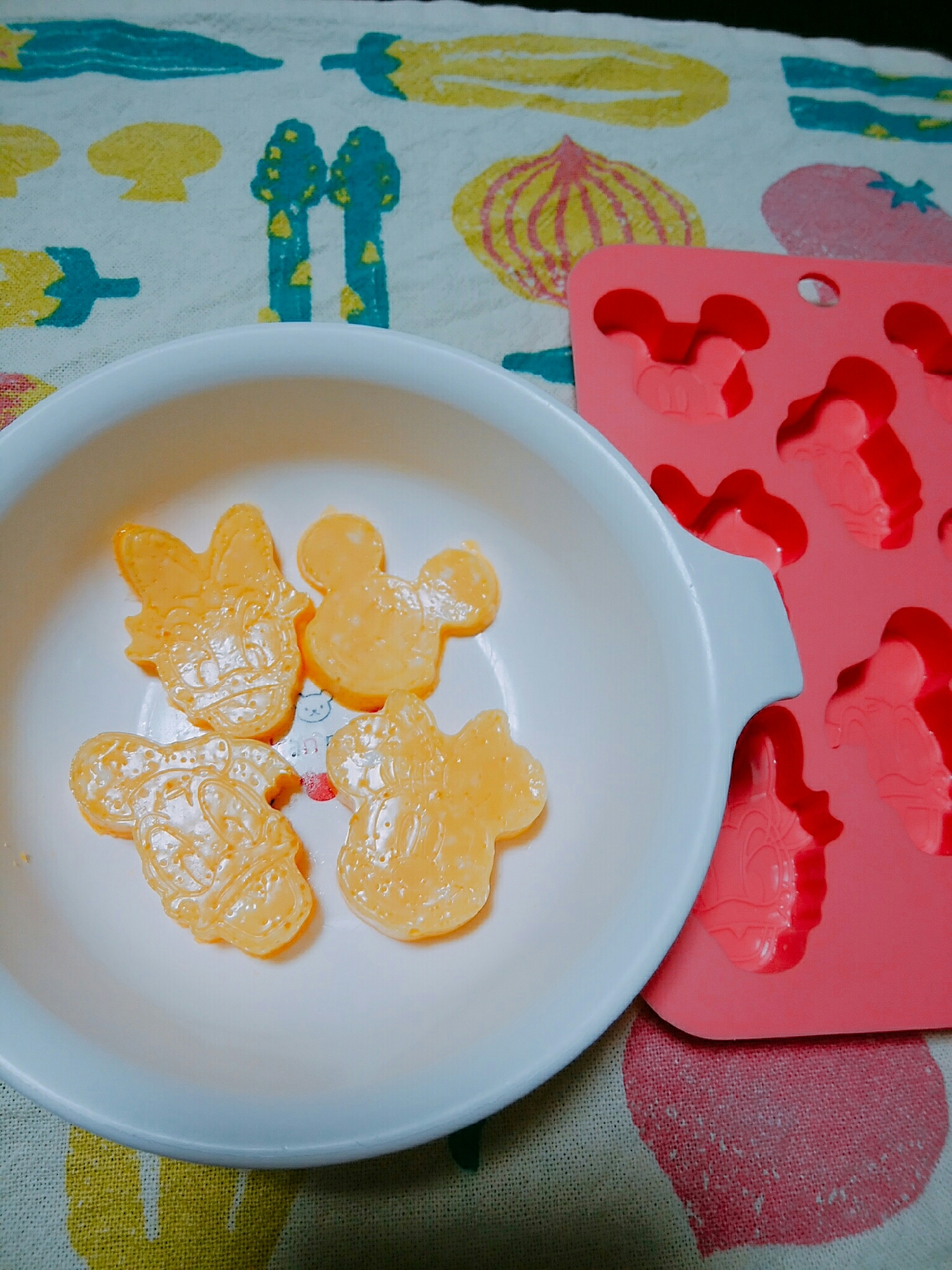 ダイソーディズニーシリコン型 カキ氷シロップで寒天ゼリーレシピ プリンセスのひんやりデザート